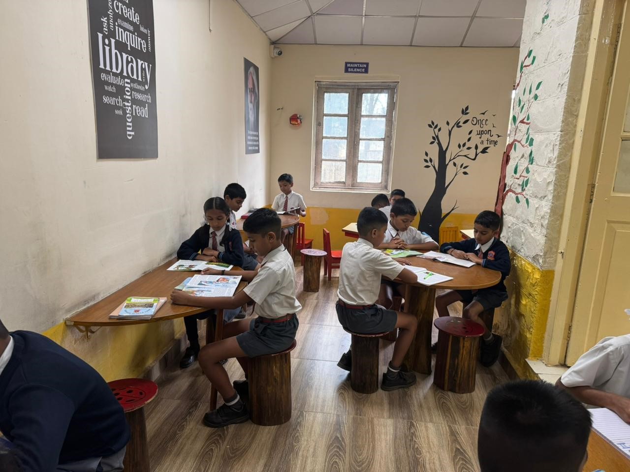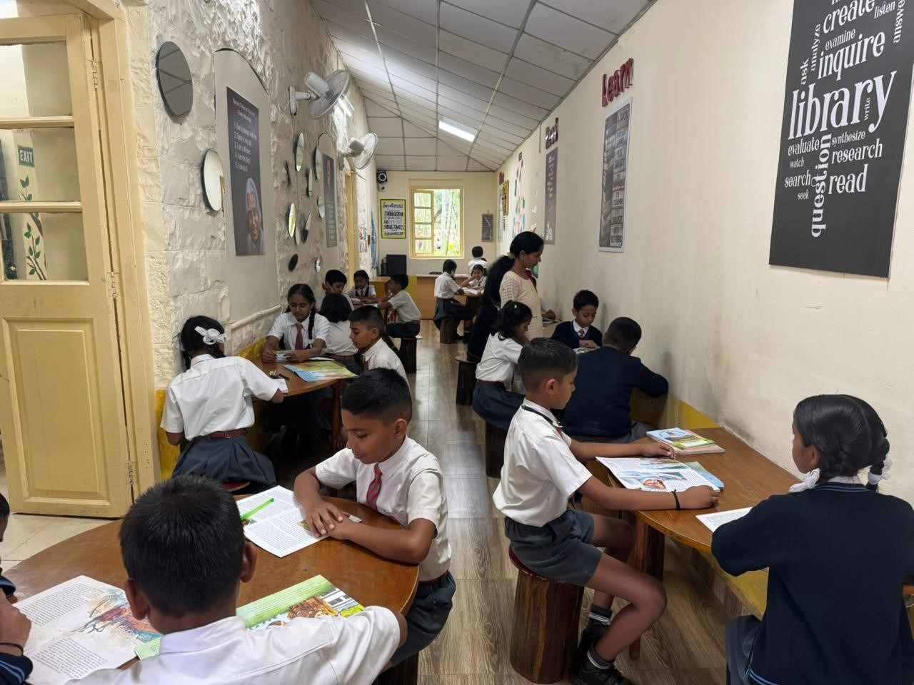 “A library is not a building, but a doorway to countless worlds.” Our school library, established in 2016, is truly the heart of our learning. With a treasure of nearly 3500 books, it offers knowledge that whispers wisdom from every shelf. The peaceful ambience, neatly arranged racks, and colourful displays create an inviting space where reading becomes a joyful journey. This colourful and luminous library encourages curiosity and helps students grow academically and creatively. Our haven of knowledge, our library, stands as a guiding light, nurturing young minds and inspiring them to dream, discover, and develop.